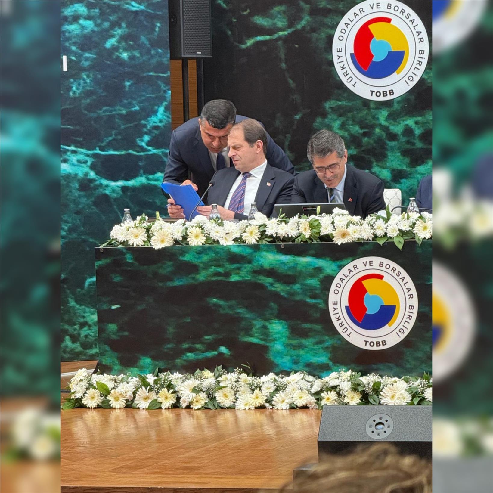 TOBB Başkanımız Sn. M.Rifat HİSARCIKLIOĞLU'nun ev sahipliğinde, Cumhurbaşkanı Yardımcımız Sn. Cevdet YILMAZ, Çalışma ve Sosyal Güvenlik Bakanımız Sn. Vedat IŞIKHAN, Hazine ve Maliye Bakanımız Sn. Mehmet ŞİMŞEK, Sanayi ve Teknoloji Bakanımız Sn. Mehmet Fatih KACIR, Tarım ve Orman Bakanımız Sn. İbrahim YUMAKLI, Ticaret Bakanımız Sn. Ömer BOLAT, Cumhurbaşkanlığı Strateji ve Bütçe Başkanımız Sn. İbrahim ŞENEL ve Oda/Borsa Başkanlarımızın katılımıyla gerçekleşen "TOBB Türkiye Ekonomi Şurası"na Yönetim Kurulu Başkanımız Sn.Osman GELİŞ'te katıldı.
