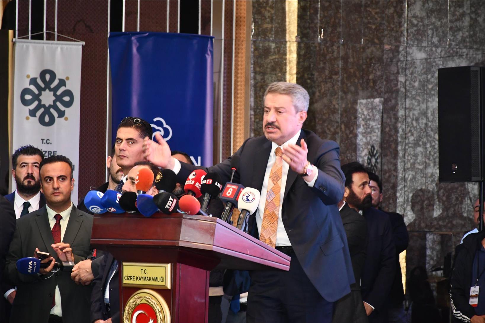 4. Uluslararası Melayê Cizîrî Sempozyumu’nun açılışı büyük bir coşkuyla gerçekleştirildi. Valimiz Sayın Birol Ekici, Kürdistan Demokrat Partisi (KDP) Genel Başkanı Sayın Mesud Barzani, İçişleri Bakan Yardımcısı Sn.Münir Karaloğlu, Cumhurbaşkanı Başdanışmanı Sn.Gülşen Orhan, AK Parti Milletvekili Sn.Arslan Tatar, DEM Parti Milletvekilleri Sn.Ayşegül Doğan, Sn.Zeki İrmez ve Sn.Nevroz Uysal Aslan, HUDA PAR Gaziantep Milletvekili Sn.Şehzade Demir, Erbil Valisi Sn.Omid Xoşnav, Zaho Valisi Sn.Guhdar Şexo, Şırnak Üniversitesi Rektörü Sn.Prof. Dr. Abdurrahim Alkış ve STK Temsilcilerimiz ile birlikte çok sayıda akademisyen ve kıymetli vatandaşlarımızın katıldığı programa Yönetim Kurulu Başkanımız Sn.Osman Geliş,Meclis Başkanımız Sn.Zekerya Ökten, Yönetim Kurulu ve Meclis Üyelerimiz de katılım sağladılar.