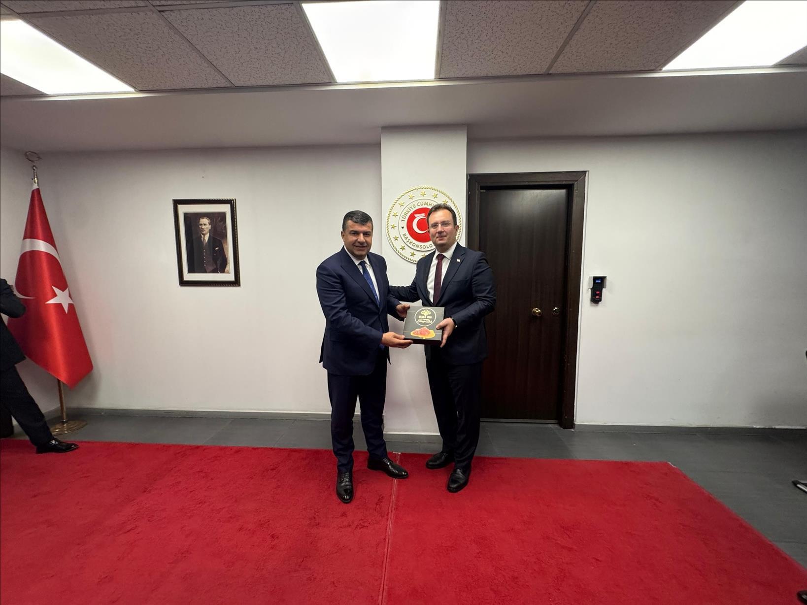 Yönetim Kurulu Başkanımız Sn.Osman GELİŞ; Valimiz Sn.Birol EKİCİ, Şırnak Belediye Başkanımız Sn.Mehmet YARKA ve Cizre TSO Başkanımız Sn.Ömer Faruk YILDIRIM ile birlikte, Erbil Başkonsolosluğunu ziyaret ederek Başkonsolos Sn.Erman TOPÇU ile bir araya geldiler.