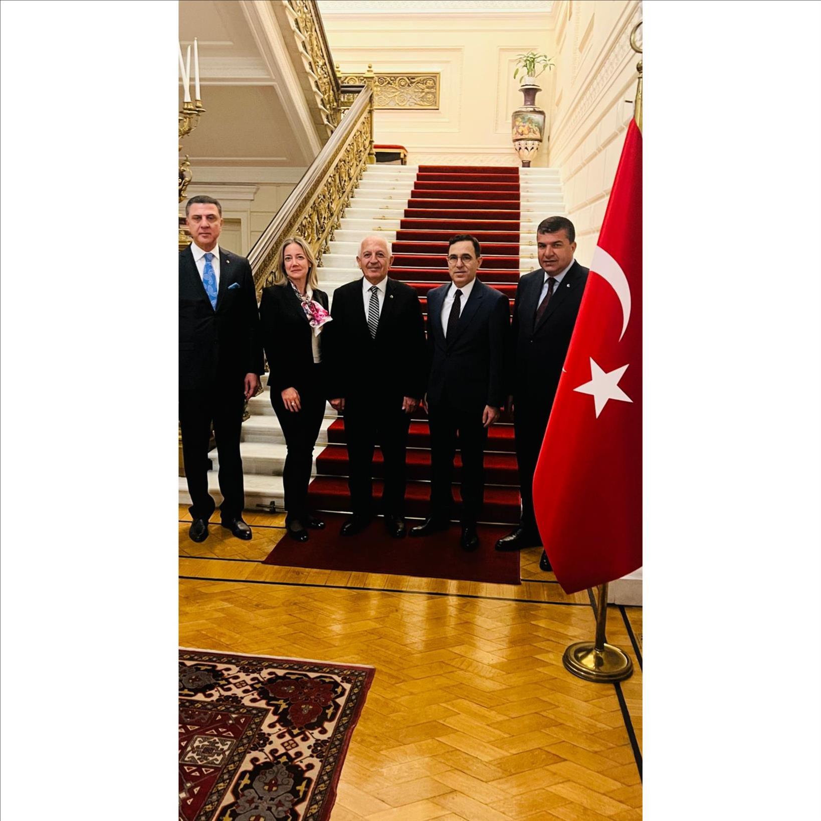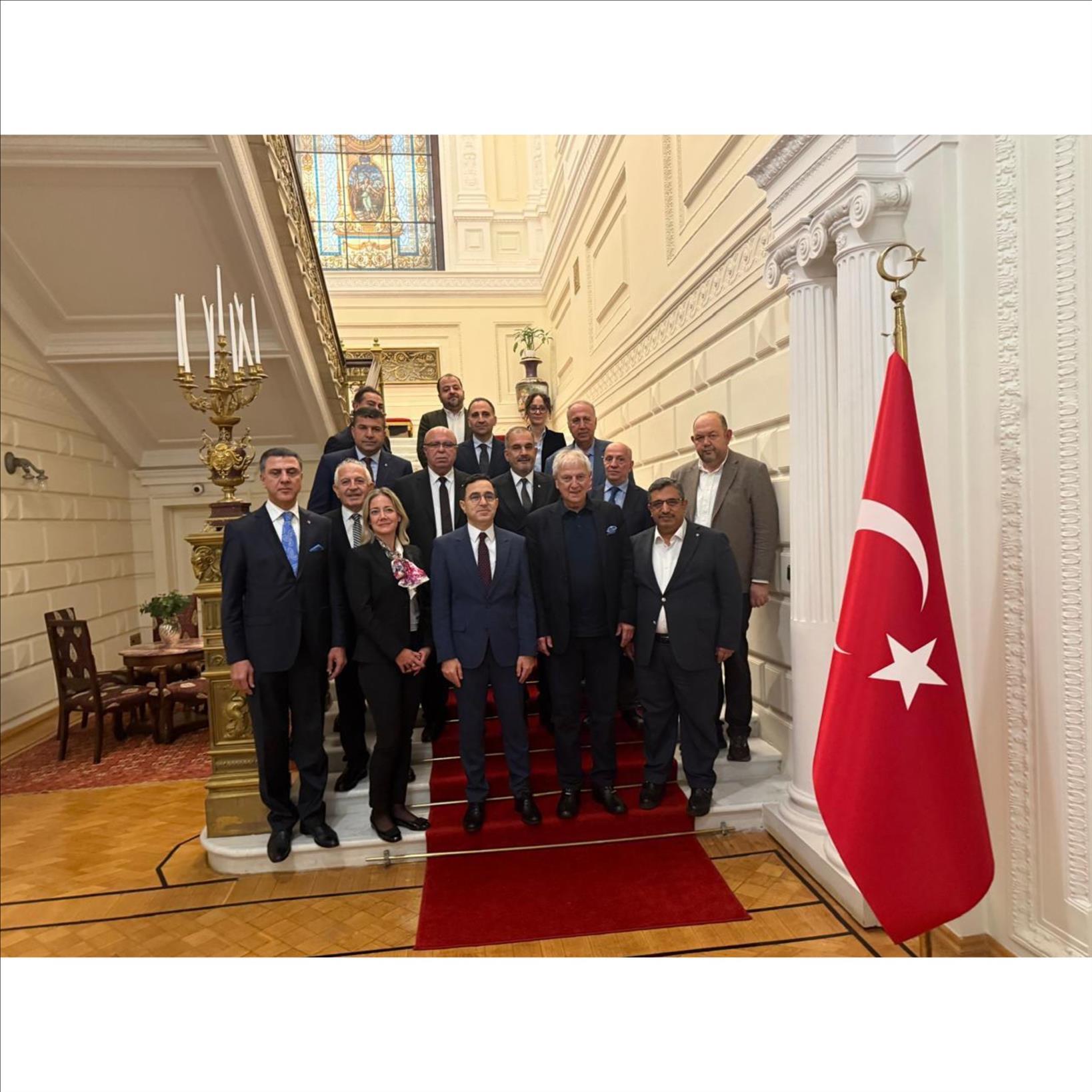 Türkiye’nin en büyük meslek kuruluşu Türkiye Odalar ve Borsalar Birliğimiz öncülüğünde Moskova'da kurulan, yurtdışındaki ilk Ticaret ve Ofis Merkezi TOBTİM Uluslararası Ticaret Merkezleri A.Ş. Yönetim Kurulu olarak, Yönetim Kurulu Başkanı Sn.Ender YORGANCILAR başkanlığında, Türkiye Cumhuriyeti Moskova Büyükelçisi Sn.Tanju BİLGİÇ'e nezaket ziyaretinde bulundular. Ziyarette Yönetim Kurulu Başkanımız aynı zamanda TOBTİM Yönetim Kurulu Üyesi olan Sn.Osman GELİŞ'te yer aldı. Nazik kabulü için Sayın Büyükelçimize teşekkür ederiz.